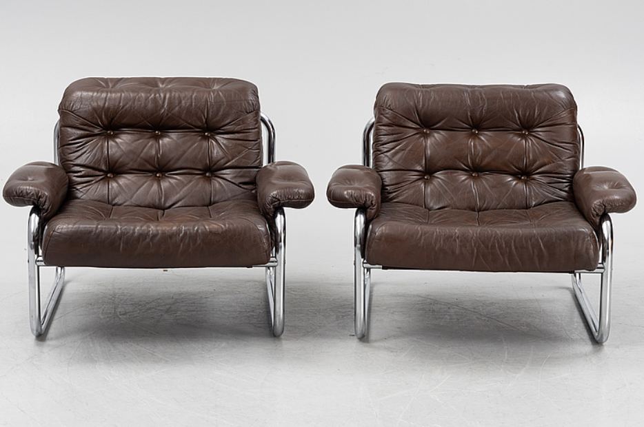 Fauteuils scandinaves en cuir deJohn Bertil Haggström